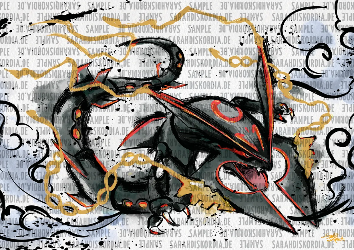 Shiny Mega Rayquaza Goldfoild – A3 Print